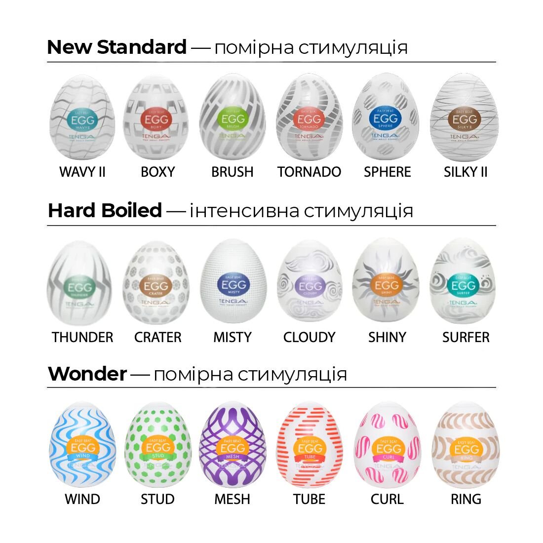 Набір Tenga Egg Wonder Pack підійде для чоловіків, які шукають нові способи для розслаблення та задоволення. Ці мастурбатори також можуть стати чудовим доповненням до парного інтимного життя, надаючи нові враження та емоції.
